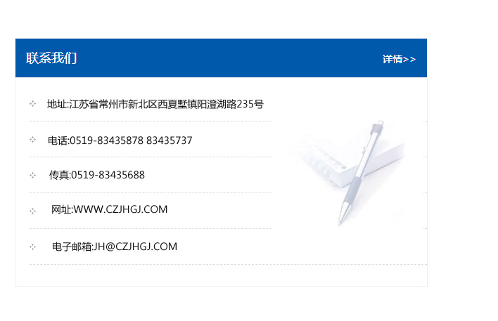 傳真:0519-83435688    郵編:213135    網址:WWW.czjhgj_com.shswyq.com    電子郵箱:JH@czjhgj_com.shswyq.com